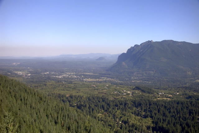This is North Bend and Mt.Si from Rattlesnake Ledge. East is right, West is left,
